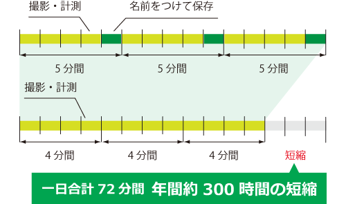ひとつの製品の撮影結果に名前をつけて保存しするまでの作業が1 分間として合わせて3 分間。